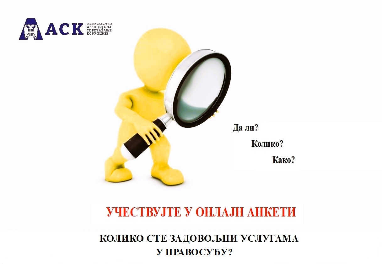 Агенција за спречавање корупције (у даљем тексту: Агенција) уз подршку Високог савета судства, спроводи истраживање путем онлајн анкете са корисницима услуга судова.